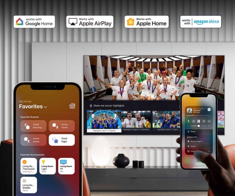Connect your TV with smart home solutions. Go hands-free with Google Assistant, Amazon Alexa, Apple Airplay and Apple Home and control your TV with a simple command.